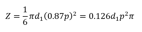 임을 고려하면 나사산의 단면 높이가 0.87p, 폭이 πd1이므로 단면계수 Z는,