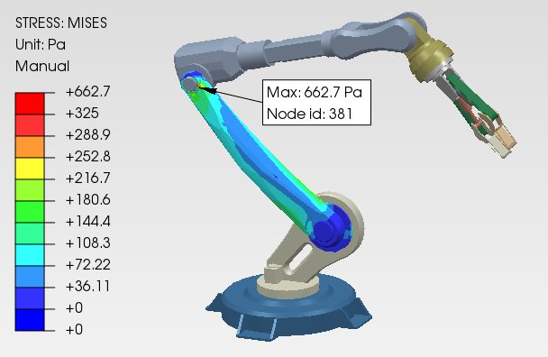 MBD에서는 각 관절에 작용하는 물리량만을 얻을 수 있었다면, F-MBD를 통해서 각 관절에 작용하는 물리량은 물론이고 기계장치를 구성하는 구조물의 변형 및 응력까지 도출해 주기 때문에 구조물의 강도 평가가 가능하고, 이를 통해 내구수명 설계를 효과적으로 할 수 있다는 강점이 있습니다.