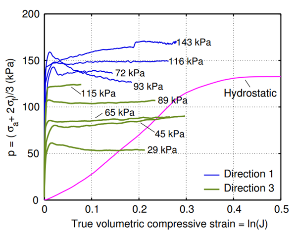 충돌 시 PU Foam의 변형을 묘사하기 위해 정확한 Principal Stress vs Volumtric Strain 데이터가 요구됩니다.
