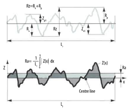 우리는 보통 표면 거칠기(조도)를 Rz로 정의합니다(그림1). 일반적으로 Rz를 정의하기 위해서 5개의 측정을 하고 그 측정값의 평균값으로 Rz를 정의합니다.