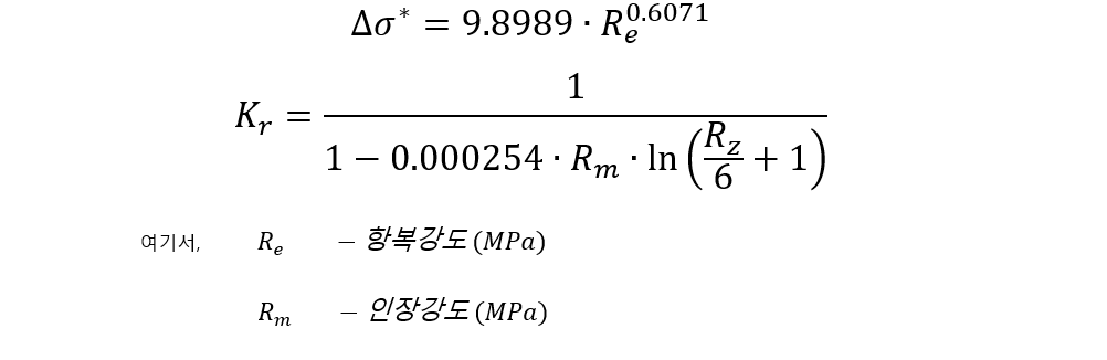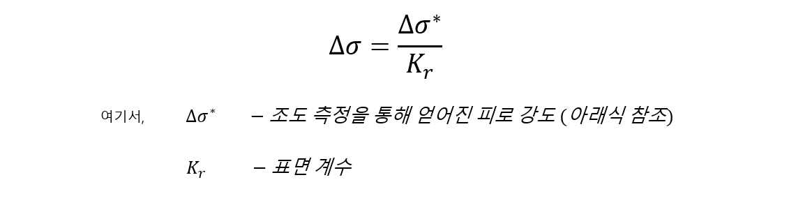 피로 강도 Δσ의 계산에 대한 구체적인 방법은 아래 식을 참고할 수 있습니다.