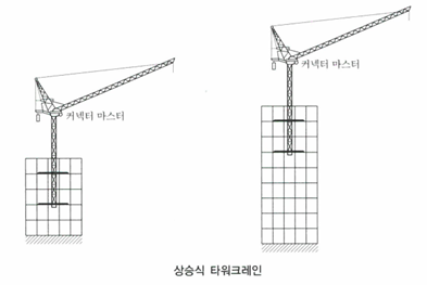 상승식은 건축물의 2개 층에 고정되어 건축물과 함께 상승하며 하중을 전달하므로 대부분의 하중은 건축물 벽체 근처에서 작용하게 됩니다.