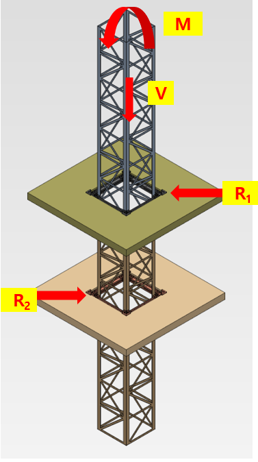 따라서 고정식 마스트의 경우 모멘트와 수직 및 수평하중이 동시에 작용하는 외팔보와 같은 조건이 됩니다.