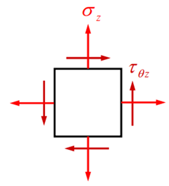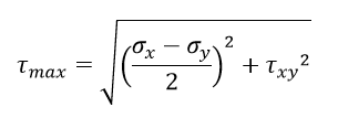 기계설계에서는 위 그림과 같이 두 방향의 수직 응력 σx, σy와 전단응력 τxy을 모두 감안하여 강도 설계를 수행해야 합니다(3축의 경우 z-방향이 추가).