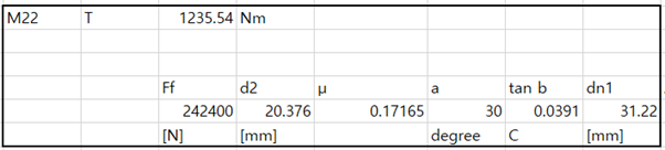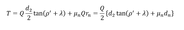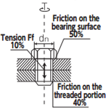 여기서, μn은 너트 또는 볼트 머리의 자리면, 와셔 면의 마찰계수이며 rn, dn은 해당 면의 평균 지름을 나타냅니다.