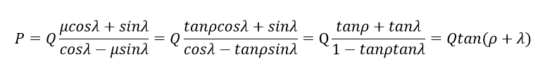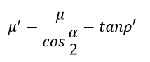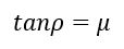 마찰계수 μ와 마찰각 ρ 사이의 관계식은,