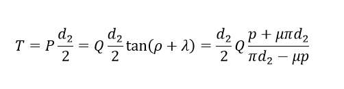 여기서 조이는 힘 P는 체결력과 연관되고, 축 방향 하중 Q는 예하중(프리텐션)과 연관됩니다.