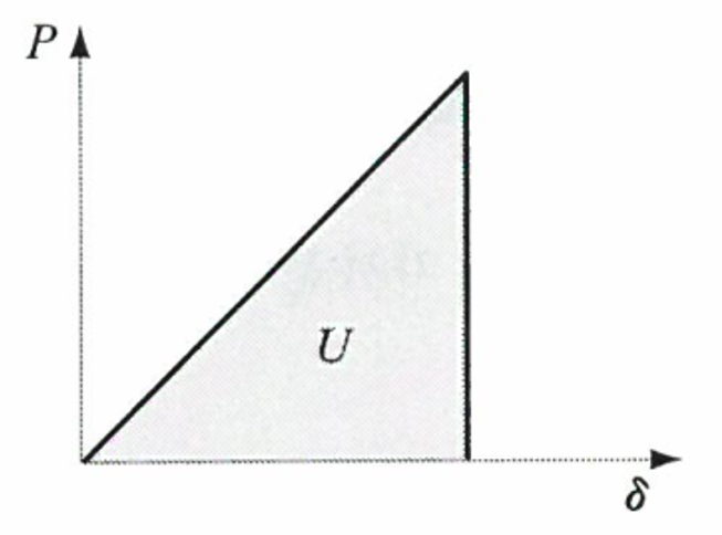 볼트에 충격하중 P가 작용하여 변형량 δ가 생겼다면, 아래 그림과 같이 충격하중에 의한 외부에서 한 일 량 Wo와 볼트의 내부에 축적된 탄성변형 에너지 U는 같으므로 아래의 관계식이 성립하게 됩니다.