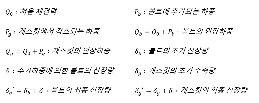 입니다. 여기서 볼트의 신장량과 개스킷의 수축량은 서로 같으므로