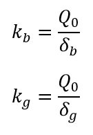 이때 볼트의 초기 신장량을 δb, 개스킷의 초기 수축량을 δg라 하면, 볼트의 스프링 상수는 kb=Q0/δb, 개스킷의 스프링 상수는 kg=Q0/δg가 됩니다.