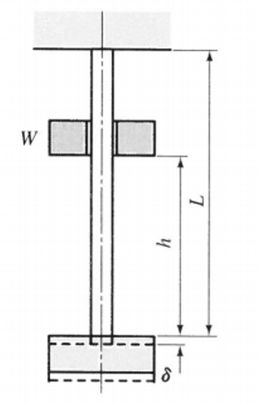 이 되고, 정하중 W에 대한 응력σs 및 신장량δs은 아래와 같으므로