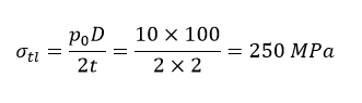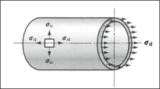 원주 방향 응력이 축 방향 응력보다 항상 큰 값(2배)을 가지므로 내압을 받는 원통은 항상 원주 방향으로 파괴됨을 알 수 있습니다.