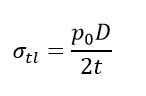 따라서 우리는 원주 방향 응력만을 고려해서 압력 배관의 두께(t)를 선정할 수 있습니다. 아래 식을 한번 볼까요?