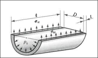 원통은 압력에 의해 원주 방향으로 파괴되려 합니다. 이때의 응력을 계산해 보면 아래와 같습니다.
