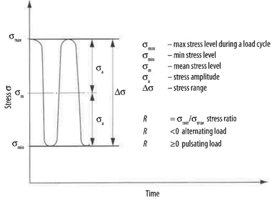 피로파괴는 반복하중에 의해 발생되므로, 우리는 피로해석을 수행하기 위해 이 반복하중에 대해 상세히 정의할 필요가 있습니다. 피로해석에서 사용되는 반복하중에 대한 정의는 5가지로 표현됩니다.