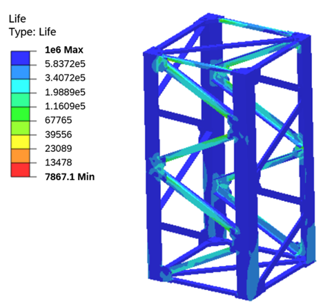 해석결과 7,867 Cycle에서 해석 대상물이 피로 파괴됨을 확인할 수 있습니다.