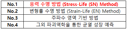 반대로 저주기 피로, 재질이 취성 금속 일 때는 주로 Strain-Life Method를 사용합니다.