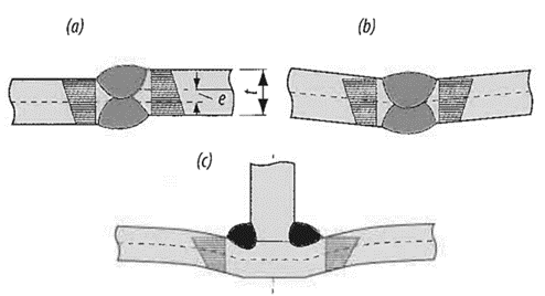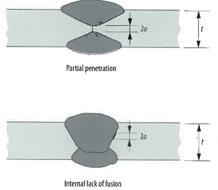 용접 경함에는 다양한 유형이 존재하는데 축 방향의 각도 편향에 대한 기하학적 문제(그림 1)가 될 수도 있고, 용접 토우의 과도한 응력 집중이나, 내부 결함에 의한 것으로도 존재할 수 있습니다.